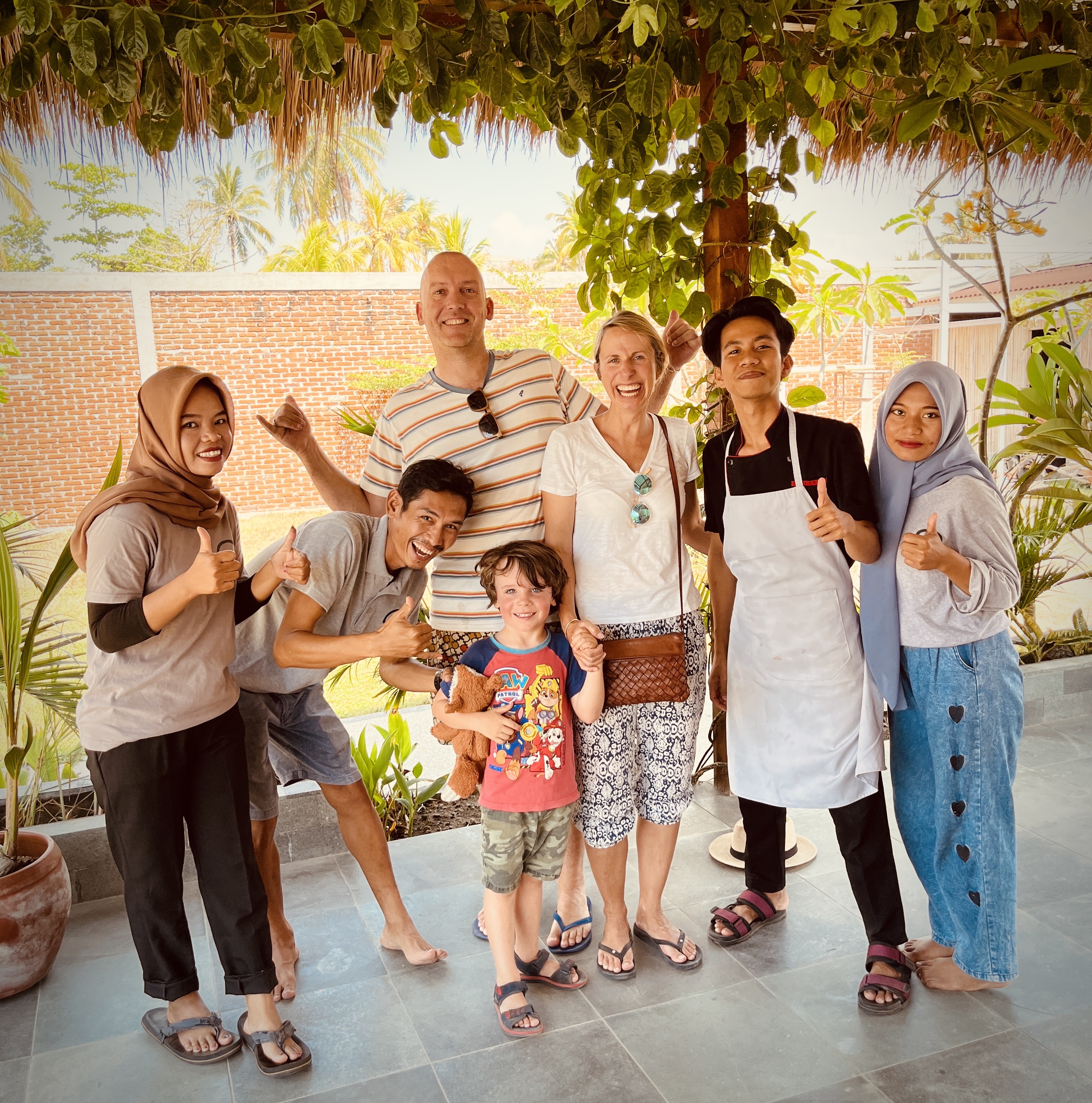 We already had a taste on Gili Gede of what would become one of our enduring experiences in Indonesia: Indonesians are crazy about kids. Their own kids have a status that we would call spoilt; it’s a common attitude that a family without kids is not a family. It’s an interesting contrast to Australian culture and at times confronting. Hospitality is important here and Indonesia is a warm and welcoming society, and the locals seem especially fascinated by tourists and white people in particular. Finn with his white skin and rosy cheeks and blue eyes is a target – in a wonderful but sometimes very full-on way. Everyone – everyone – wants to stop and say hello, and often they don’t stop at that. People take photos of us in the street, they come up and touch Finn’s face, they want to know where we are from. We hear “Hello handsome boy” so often in the street that it’s become a refrain whenever Finn is in trouble, “Don’t you know that I’m a handsome boy?” As if that’s a get-out-of-jail-free card. Arriving back in Australia and losing his princely status is going to be hard.