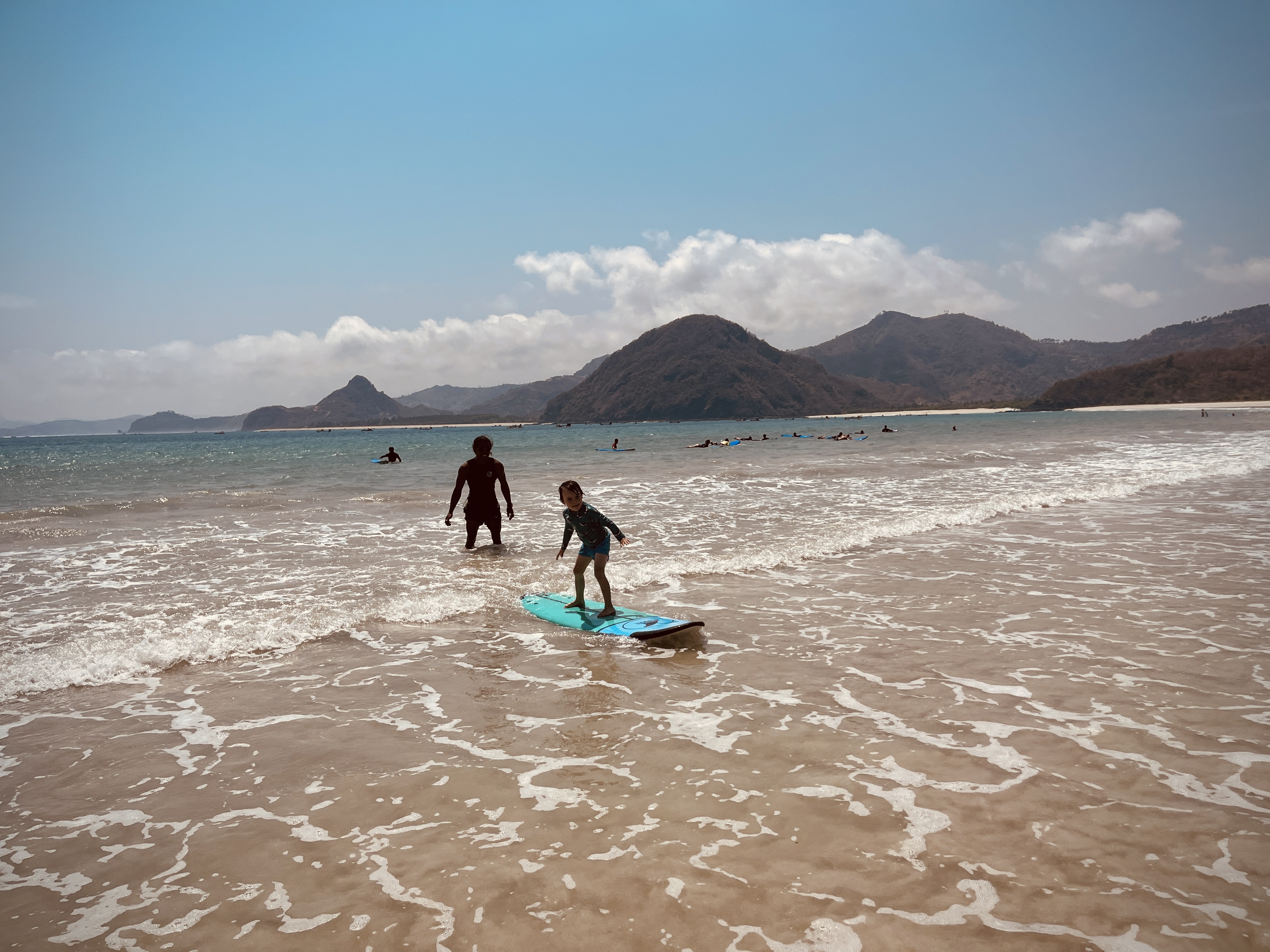 We spent three days on the white sandy beach of Selong Belanak, Finn and Steffi learning to surf, Alex drinking a lot of coffee, and all of us enjoying sunsets by the water.